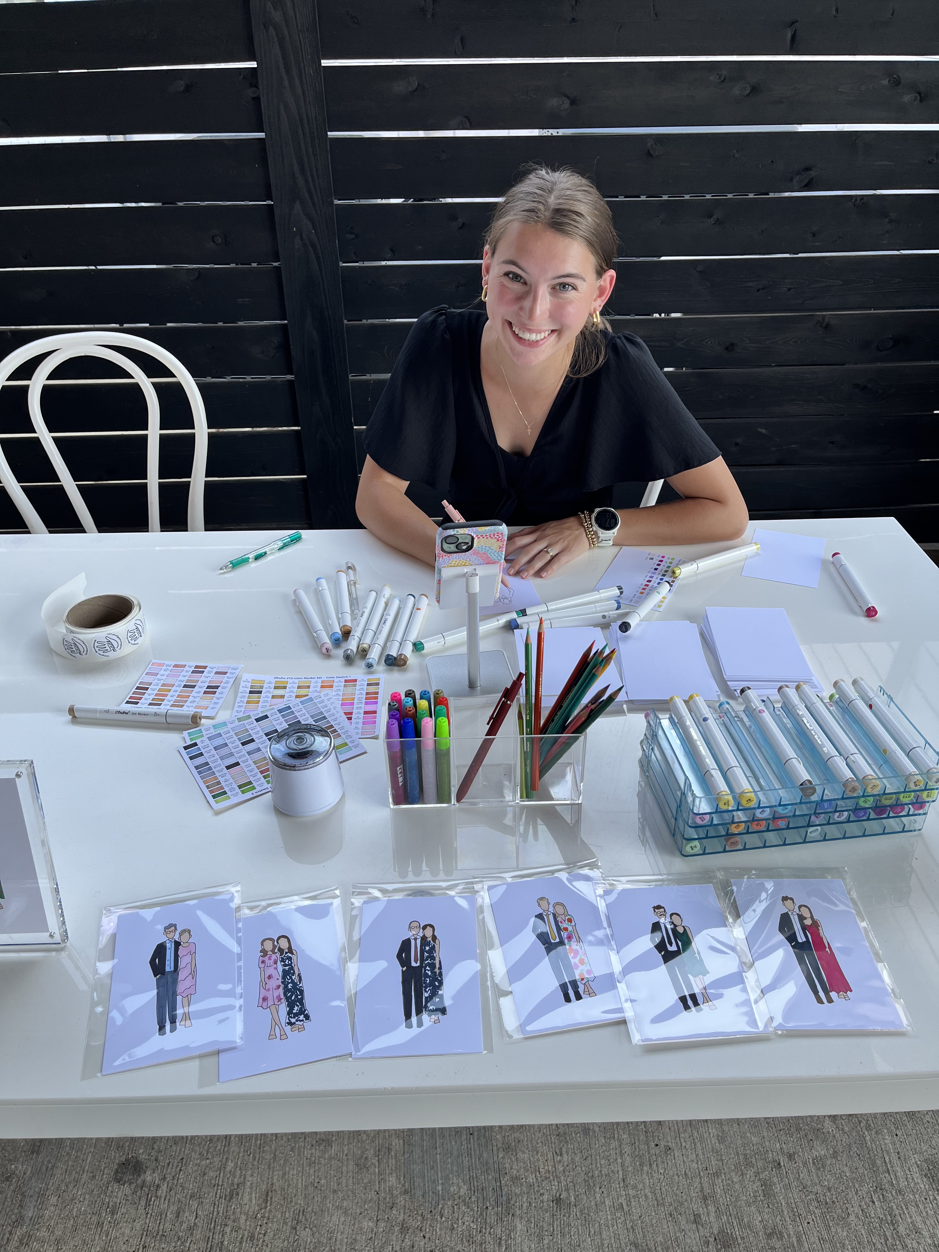 I am an artist and guest illustrator from Austin, TX. Art has been my lifelong passion. For as long as I can remember, I have loved exploring my creativity through crafting and painting. I was inspired to create Handlosmade back when I was a Junior in high school. Initially, it began as a small Etsy venture where I painted vinyl records, Bibles, and denim jackets, but it has since evolved. My journey has led me to shift from paintbrushes to pens and paper, with a current focus on live guest illustrations. During my Senior year at Texas A&M, where I studied Marketing, I decided to make the transition from using paintbrushes to working with pens and paper, dedicating my focus to creating live guest illustrations.